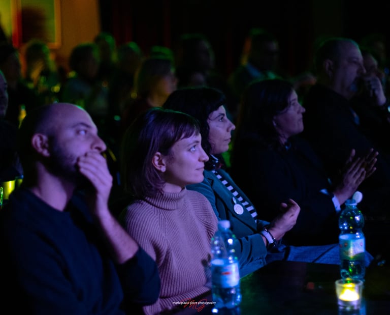"E' stata una serata piacevole, divertente e coinvolgente. Bellissime le canzoni cantate magistralmente, bello il testo dello spettacolo e le citazioni. Simpatica la partecipazione degli altri attori. Uno spettacolo pensato, partecipato, condiviso, bravi!"